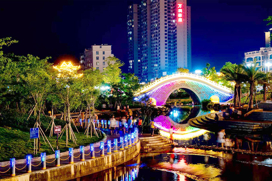 新型路障石材具有擋車功能,提升場所的形象和安全性,夜晚展現(xiàn)出特別絢麗的效果